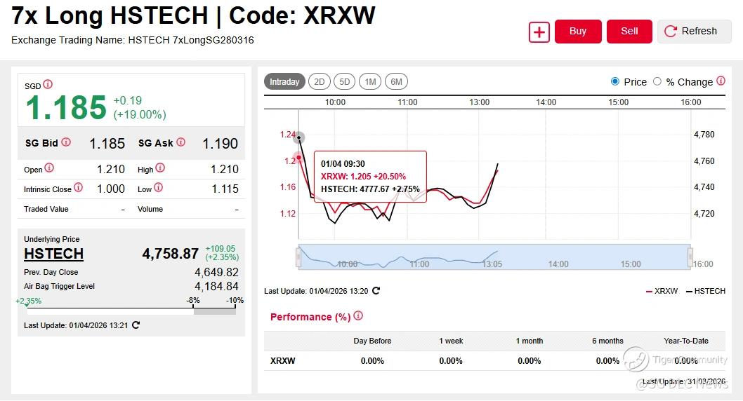HSTECH gapped up 3% at the open on optimism surrounding the end of the Iran war, lifting the HSTECH 7x Long DLC (XRXW) up 21%, and the HSTECH 7x Short DLC (9B2W) down a similar magnitude. The HSTECH 7x DLCs can magnify exposure in either direction, allowing investors to express their view on whether the move could extend into a rebound or reverse into further downside