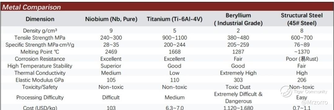Niobium Metal: Supply of niobium metal materials is highly concentrated, with only $Materion (MTRN.US)$ and $Carpenter Technology (CRS.US)$ supplying related products in the US. Rocket engine hot ends must use niobium (Nb) for its high-temperature resistance, as titanium and beryllium cannot withstand such conditions.