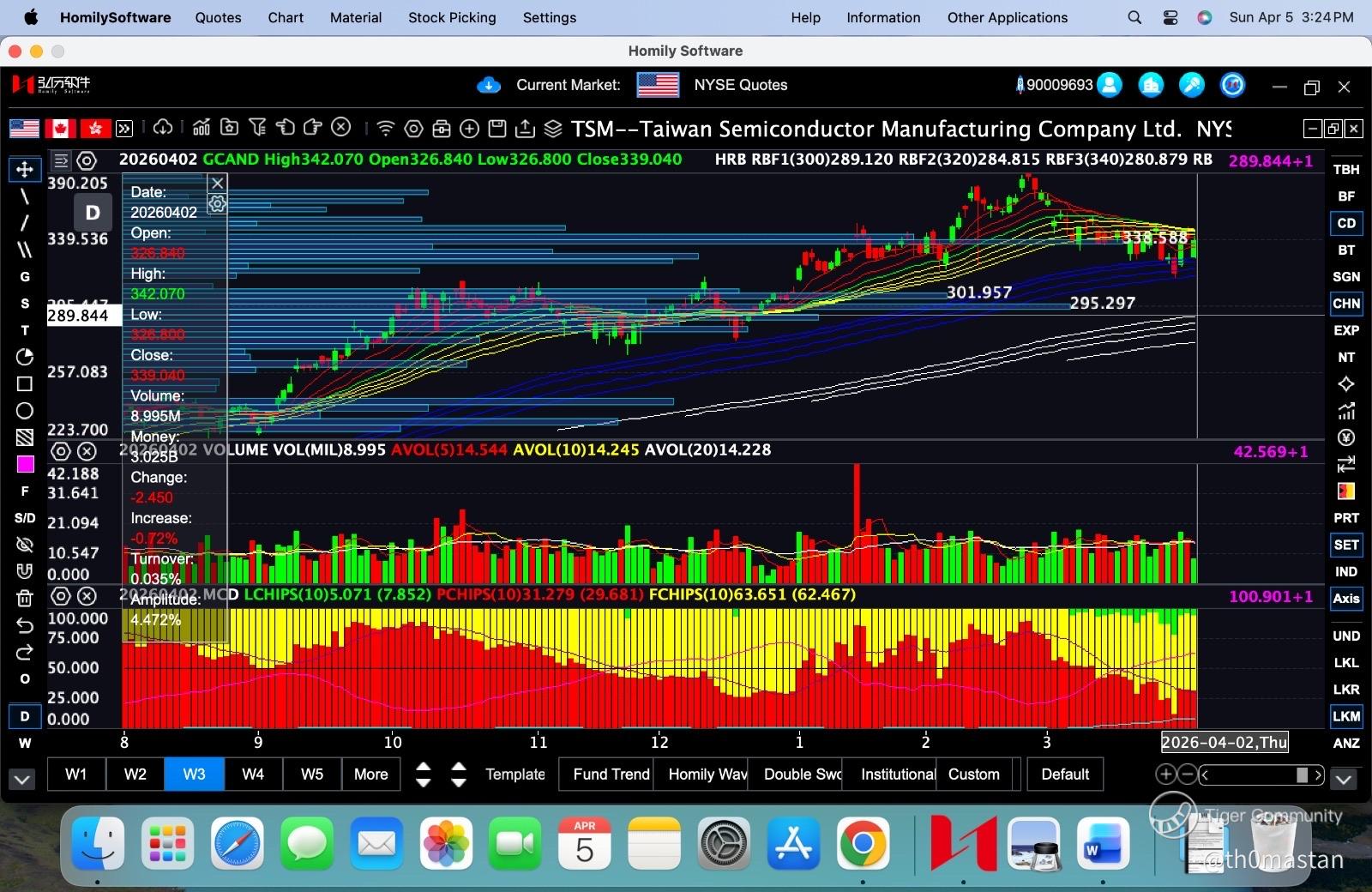 The current market volatility presents opportunity. TSM is at a support region (blue lines) if it continues to stay within the range, it will be a good runway for future upside. However, given the macro market is largely driven by conflict and US policy changes, there is also a likely hood of further correction. If that's the case, the white lines would be a good entry point for long term portfolio accumulation.