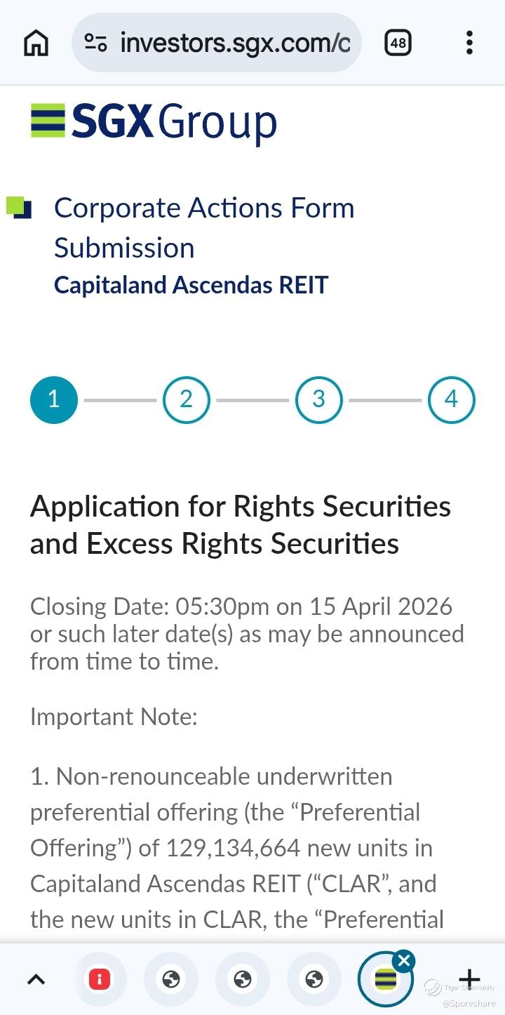 CapLand Ascendas Reit - PO can apply online via CDP. Click on EC-A,follow by clicking on Rights SGD will bring you to the application page. Deadline to apply the PO is on 15 April 26. Do take note.