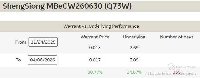 ✳Consequently, the Sheng Siong call warrant mentioned on the show - $ShengSiong MBeCW260630(Q73W.SI)$