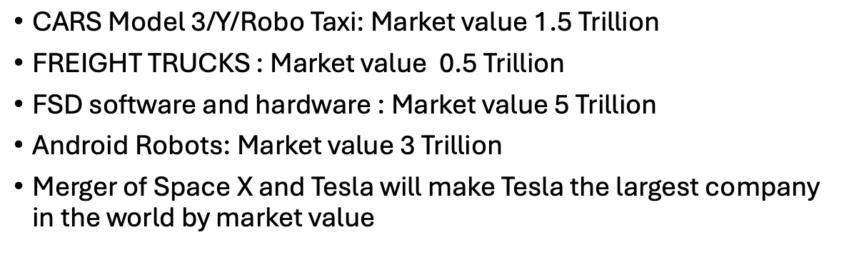 $Tesla Motors(TSLA)$ From what I see, Elon Musk's strategy will make Tesla a $10 trillion company within 5 years. The stock should reach 3,500.