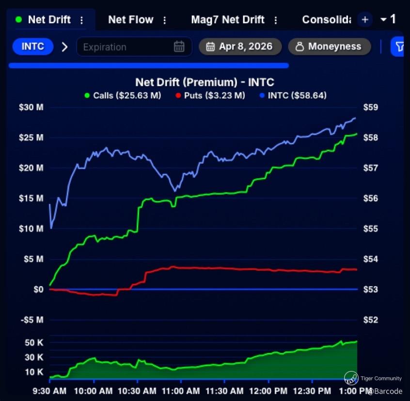 $Intel(INTC)$ $NVIDIA(NVDA)$ $Advanced Micro Devices(AMD)$ ππβ‘ $INTC Flow Regime Shift: Institutional Call Demand Forces Momentum Expansion β‘ππ