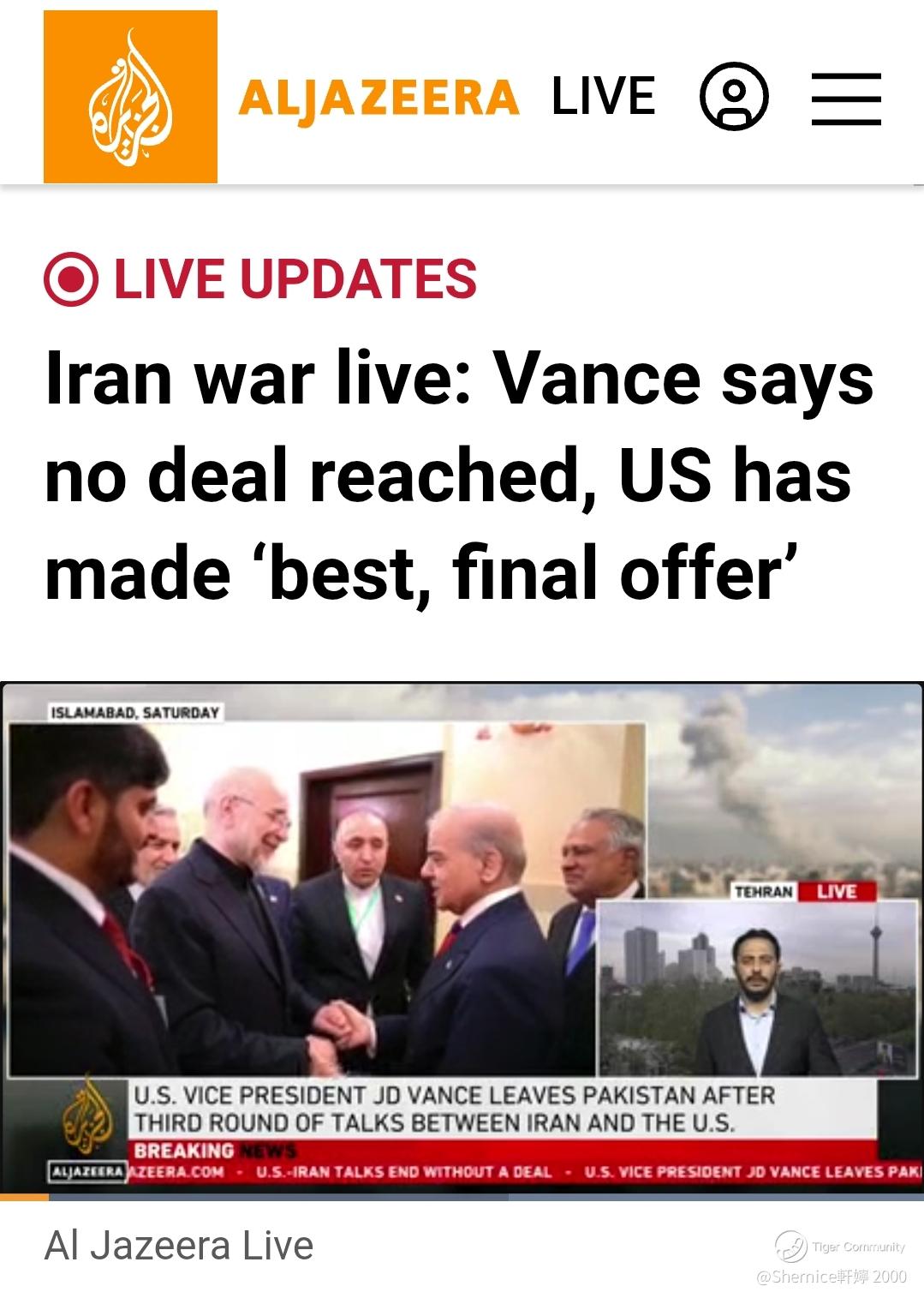 “US and Iran fail to reach agreement after historic peace talks in Pakistan.”