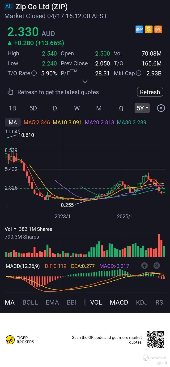 $Zip Co Ltd(ZIP.AU)$