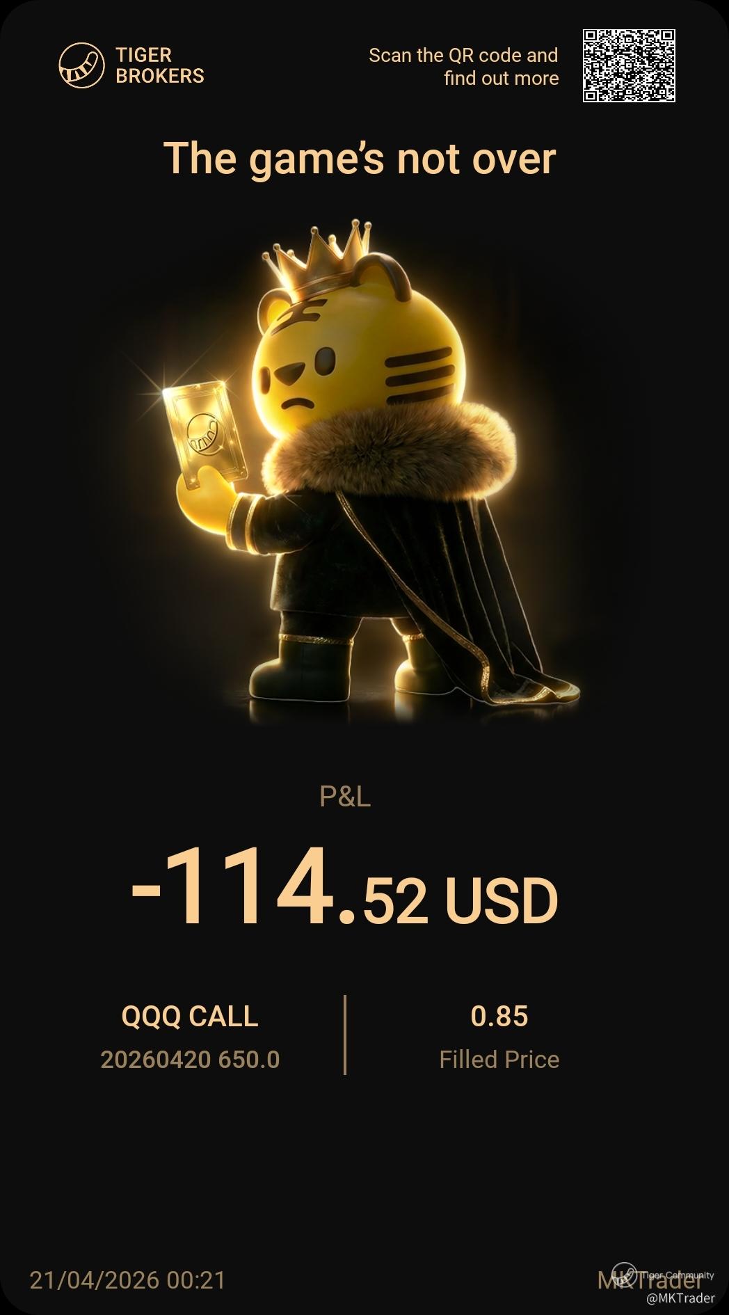 $QQQ 20260420 650.0 CALL$ Guessed wrong, pay the price. Was a weekend gamble.