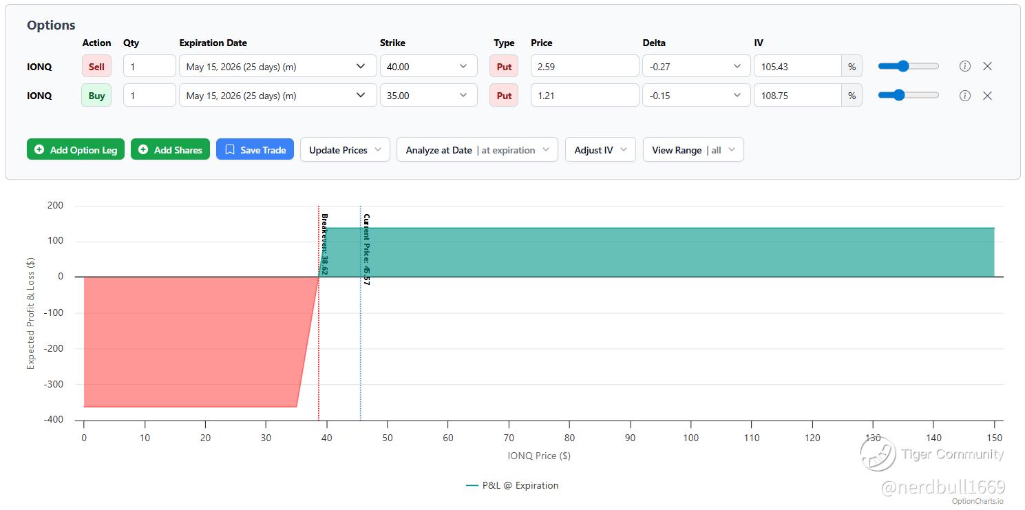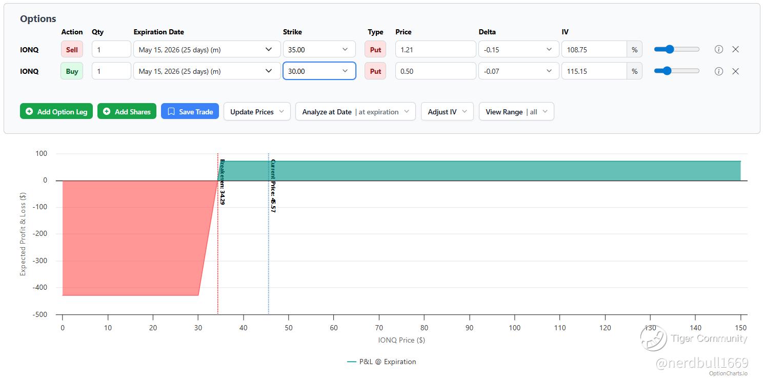 Conservative Setup: Selling the $35 Put and buying the $30 Put. This strike is safely below the current price, banking on the idea that the DARPA news has set a new, higher floor for the stock.
