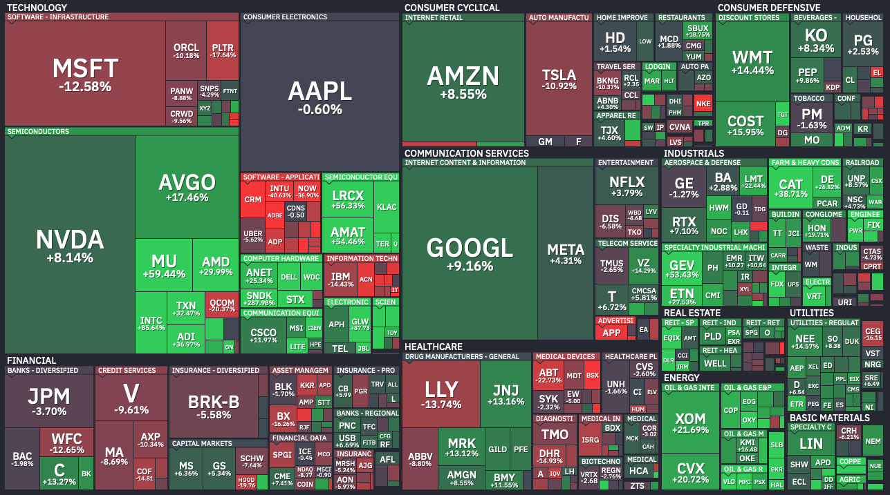 The drop early in the year was due to speculation that tariffs would ruin the economy, which didn’t come to pass. And the market’s move higher was largely an undoing of the tariff pessimism and pricing in newfound growth.