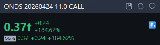 There are 493.68K Ondas option contracts traded on Monday, up 94% from the previous trading day. Call options account for 79% of overall option trades. Particularly high volume was seen for the $11 strike call option expiring April 24, with 39,744 contracts trading. ONDS 20260424 11.0 CALL