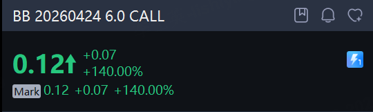 There are 295K BlackBerry option contracts traded on Monday, up 112% from the previous trading day. Call options account for 82% of overall option trades. Particularly high volume was seen for the $6 strike call option expiring April 24, with 35,862 contracts trading. BB 20260424 6.0 CALL