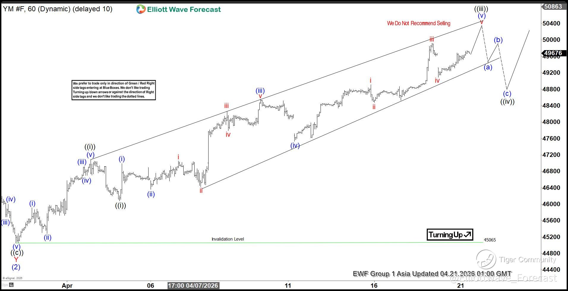 From the wave (2) low, wave ((1)) advanced to 47,090. A subsequent pullback in wave ((ii)) found support at 46,076. The Index then nested higher, with wave (i) ending at 46,987 and wave (ii) retracing to 46,362. Momentum carried wave (iii) to 48,555, followed by a measured pullback in wave (iv) to 47,534. One more leg higher is expected to complete wave (v) of ((iii)). Afterward, the Index should correct the cycle from the April 2 low in wave ((iv)) before resuming its upward trajectory. Near term, the pivot at 45,065 remains critical. As long as this level holds, dips are expected to attract buyers. Support should emerge in three, seven, or eleven swing sequences, reinforcing the broader bullish outlook.