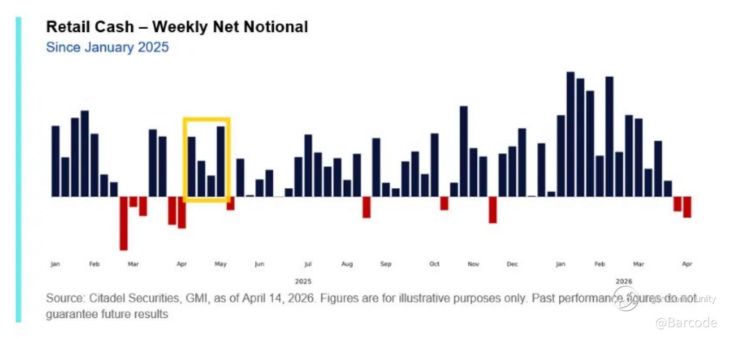 π This divergence matters. Retail capital concentrated into perceived AI and growth leaders during the 2025 drawdown, effectively establishing a demand floor that is now pulling institutional money back into the same trade.