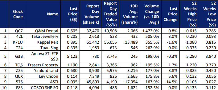 $Q&M Dental(QC7.SI)$ $Taka Jewellery(42L.SI)$ $Keppel Reit(K71U.SI)$ $Tuan Sing(T24.SI)$ $Amova STI ETF S$D(G3B.SI)$ $Frasers Property(TQ5.SI)$ $Yanlord Land(Z25.SI)$ $Ley Choon(Q0X.SI)$ $ASTI(575.SI)$ $COSCO SHP SG(F83.SI)$