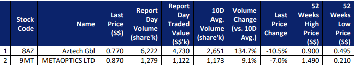 $Aztech Gbl(8AZ.SI)$ $METAOPTICS LTD(9MT.SI)$