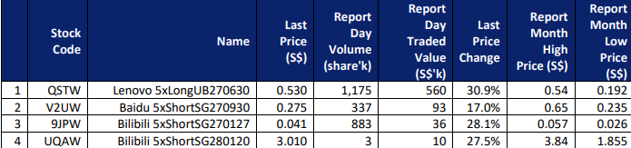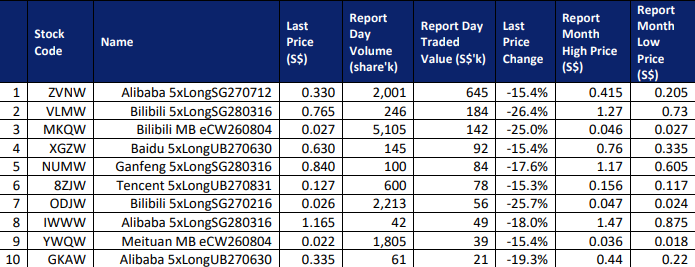 $Alibaba 5xLongSG270712(ZVNW.SI)$ $VLMW(VLMW.SI)$ $Bilibili MB eCW260804(MKQW.SI)$ $Baidu 5xLongUB270630(XGZW.SI)$ $NUMW(NUMW.SI)$ $Tencent 5xLongUB270831(8ZJW.SI)$ $Bilibili 5xLongSG270216(ODJW.SI)$ $Alibaba 5xLongSG280316(IWWW.SI)$ $Meituan MB eCW260804(YWQW.SI)$ $Alibaba 5xLongUB270630(GKAW.SI)$