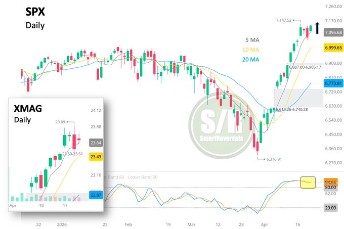The gap at 7,051 served well as support. While today’s move was tech-driven and price action felt indecisive excluding the $Defiance Large Cap ex-Mag 7 ETF(XMAG)$ giants, this does not imply a lack of conviction.