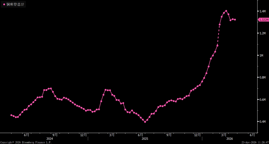 Looking at the marginal pattern on the far right of the chart, the latest week still shows a fairly clear divergence: Shanghai copper inventories continued to decline noticeably, LME copper inventories continued to rise, and CME copper inventories remained broadly stable at high levels, with only a slight increase. Total global copper inventories extended the high-level sideways trend seen last week, with the latest reading still steady near 1.32 million tons. In other words, the defining features of the latest week are that “Shanghai continues to destock, CME remains stable at high levels, LME continues to accumulate, and total inventories remain elevated.” For now, the marginal inventory pressure still mainly comes from overseas markets, especially from the continued inventory build on the LME side.