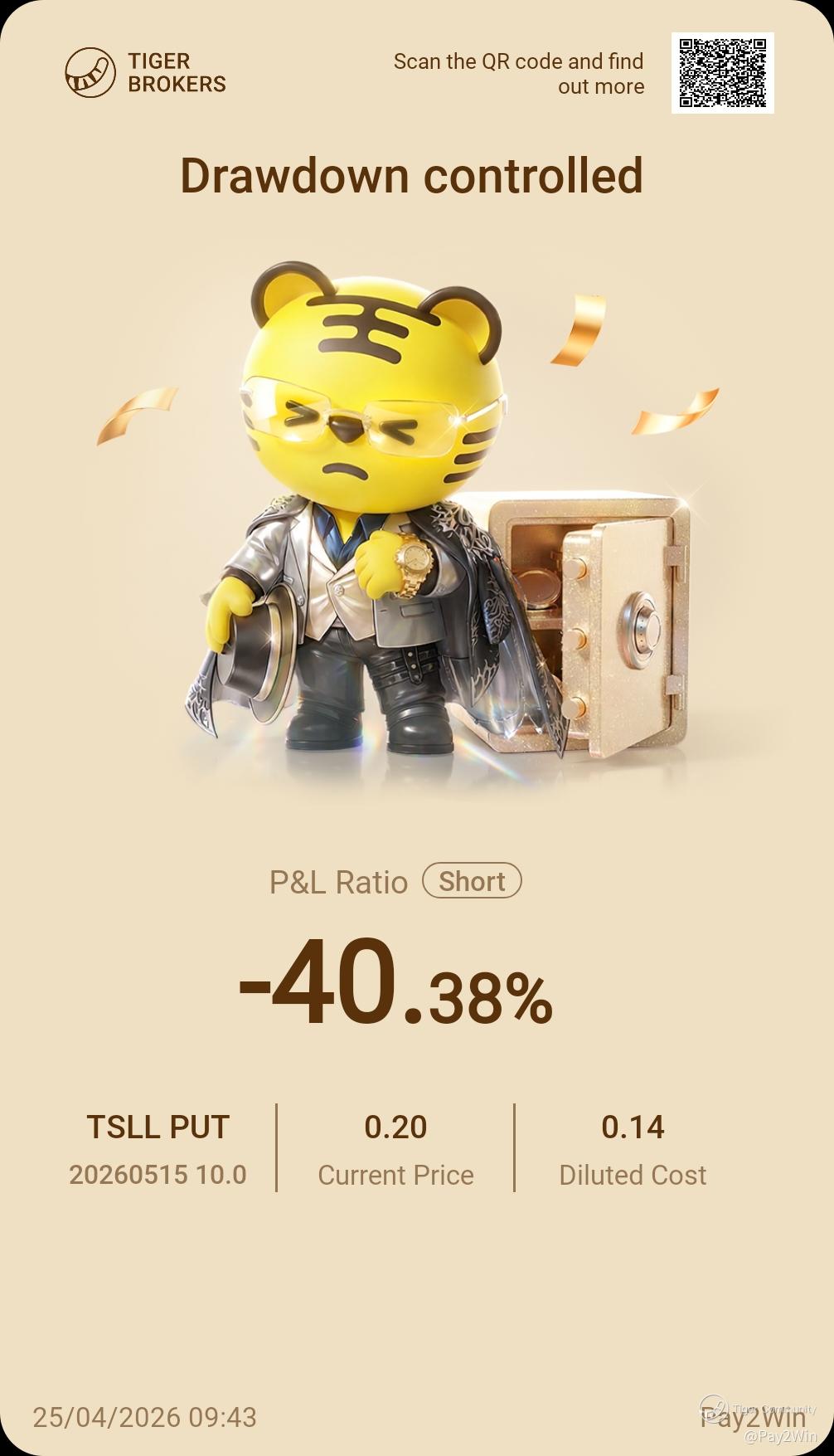 A. I have set aside about 5,050 USD in my Tiger account as of 2026-APR-05 incase I get assigned to purchase 500 shares of TSLL from the PUT Options.