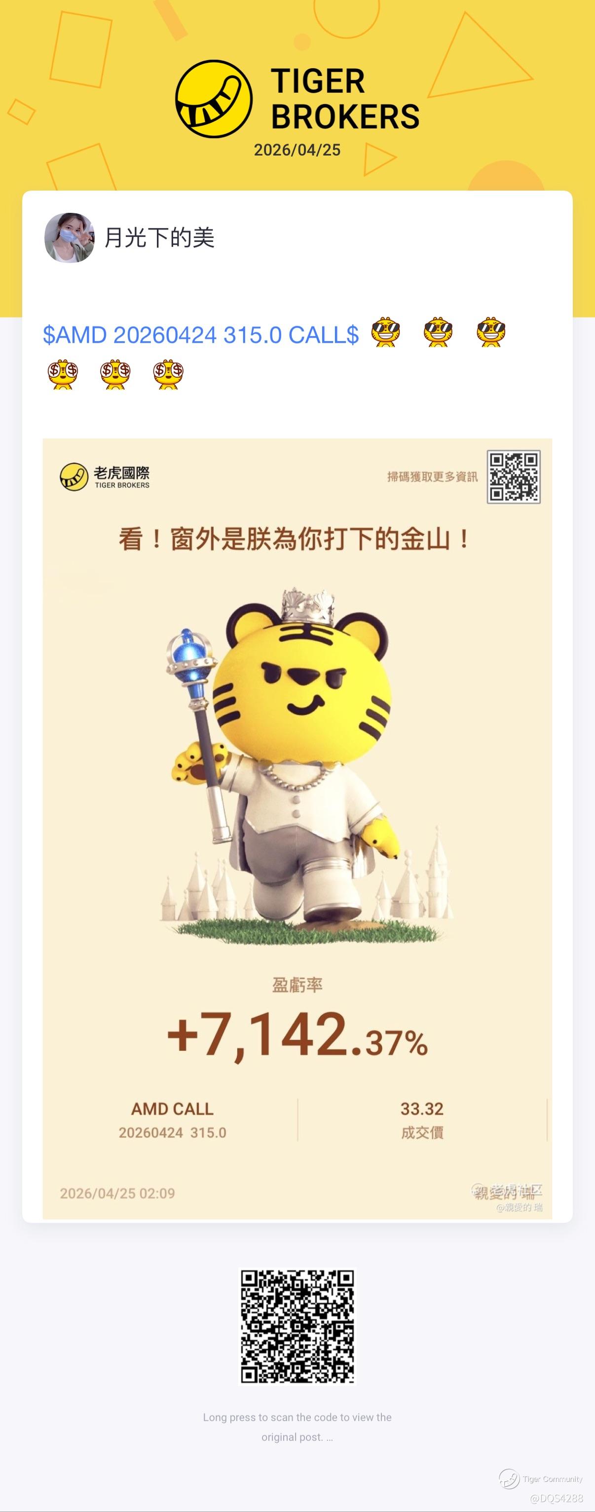 Share your positions with us! This is a column where you can find the winning trades of our fellow tigers. There probably are a few potential opportunities that you may have overlooked.