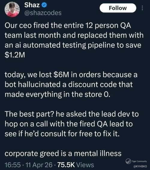 Meta is laying off 8,000 employees, 10% of its entire global workforce starting May 20, with a second, larger wave planned for the second half of the year. And this morning, Microsoft made a move that is in some ways even more significant. For the first time in its 51-year history, Microsoft is offering voluntary retirement buyouts to roughly 7% of its U.S. workforce, approximately 8,750 employees whose combined age and years of service total at least 70. - X user StockMarket News