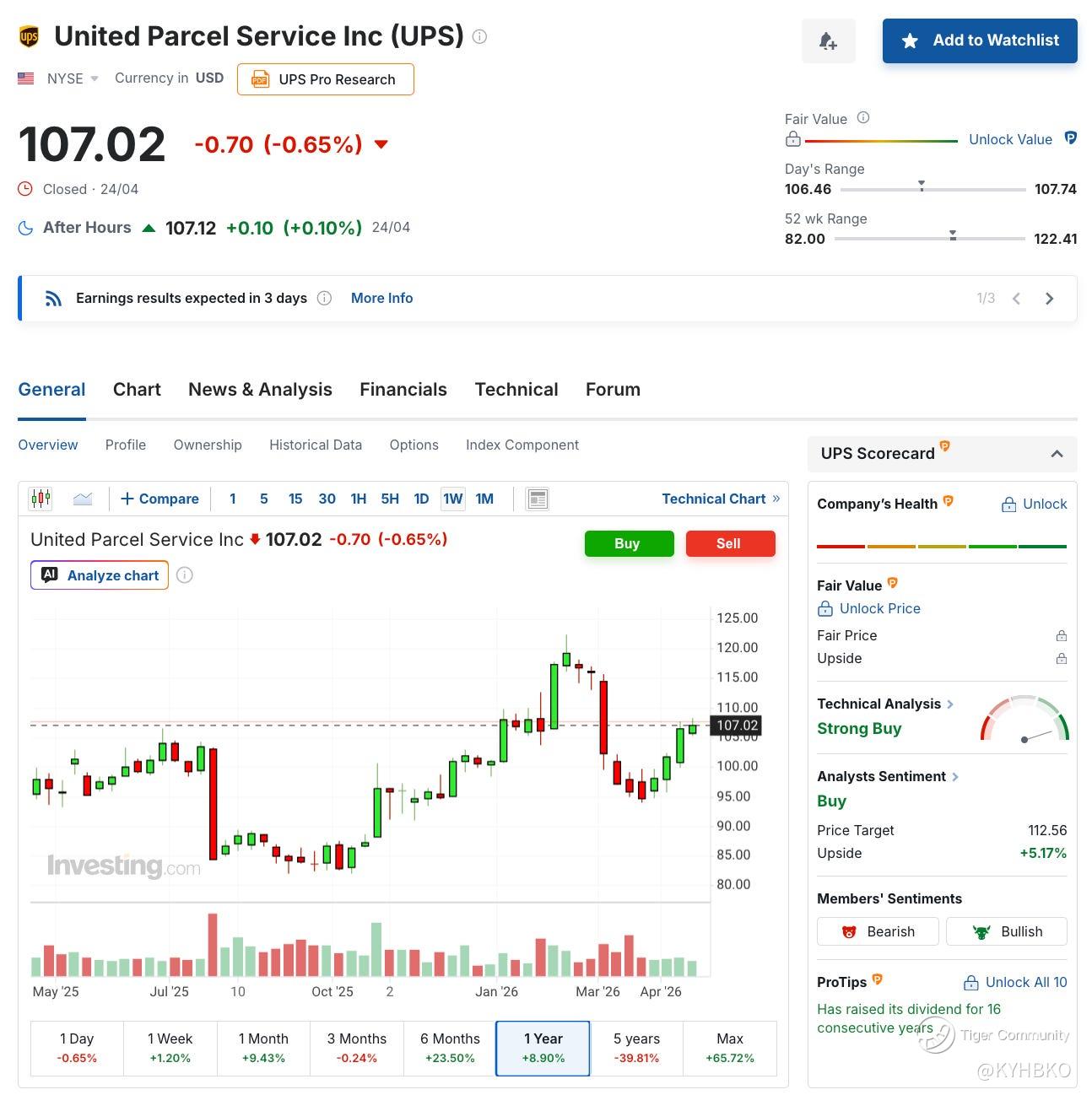 The stock price of UPS has risen 16.8% compared to a year ago. With an EPS of $6.56 and a P/E ratio of 16.3, this is a rather attractive offering at the current price.
