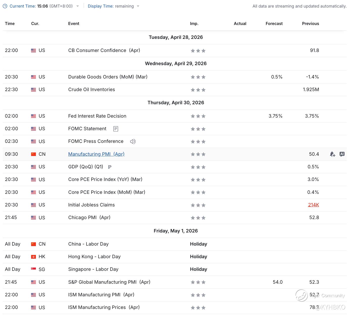 Chicago PMI (April): Released after the prior reading of 52.8, providing a snapshot of regional manufacturing conditions.