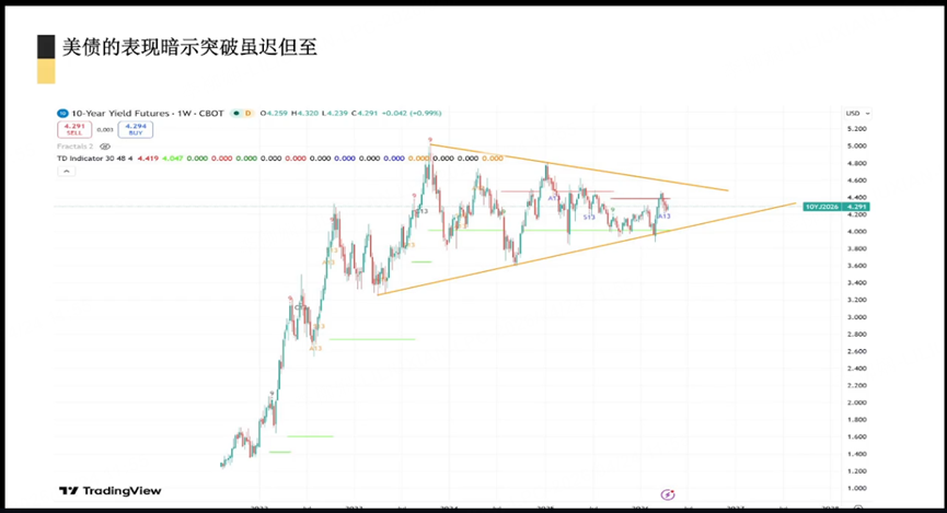 From the perspective of dollar assets, both higher yields and selling pressure on Treasuries are unfavorable. Among the three pillars of the dollar, developments in U.S. Treasuries will clarify market sentiment. Once Treasury direction is confirmed, market sentiment will become clearer. Cheng Jun suggested watching this indicator and using it alongside the dollar and euro to verify whether a breakout is real. In a stable market, Trump is accelerating the pace of topping out, and the erosion of the premium is also accelerating.