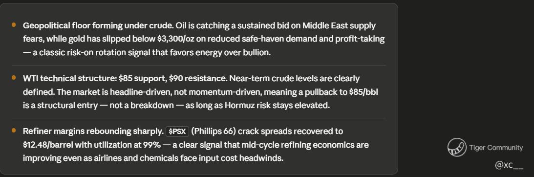 The macro narrative is shifting fast: crude oil is getting a hard geopolitical floor from Middle East supply fears while gold quietly surrenders ground as safe-haven rotation unwinds. With US–Iran tensions keeping the Strait of Hormuz risk premium alive, $WTI is running on headline fuel — not clean trend momentum — and that creates a high-conviction dip-buying window for disciplined traders. Meanwhile, $GLD holders are absorbing profit-taking pain as capital rotates into inflation-sensitive energy plays. The energy ecosystem is repricing in real time, and the divergence between upstream winners and downstream squeezers is exactly where alpha lives right now.