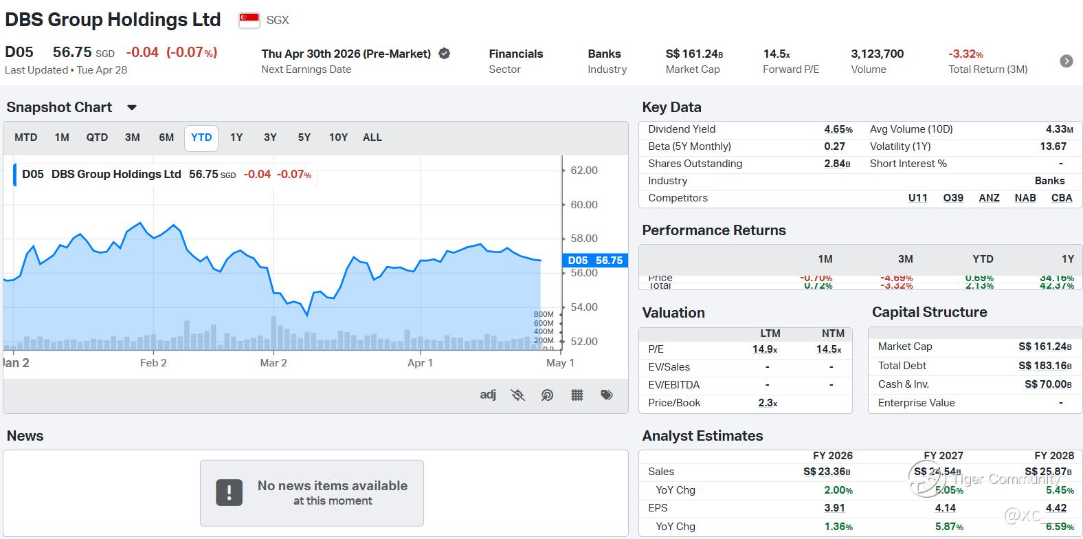 $DBS Group Holdings Ltd.(DBSDF)$ $OCBC Bank(O39.SI)$ $SGX(S68.SI)$ $UOB(U11.SI)$
