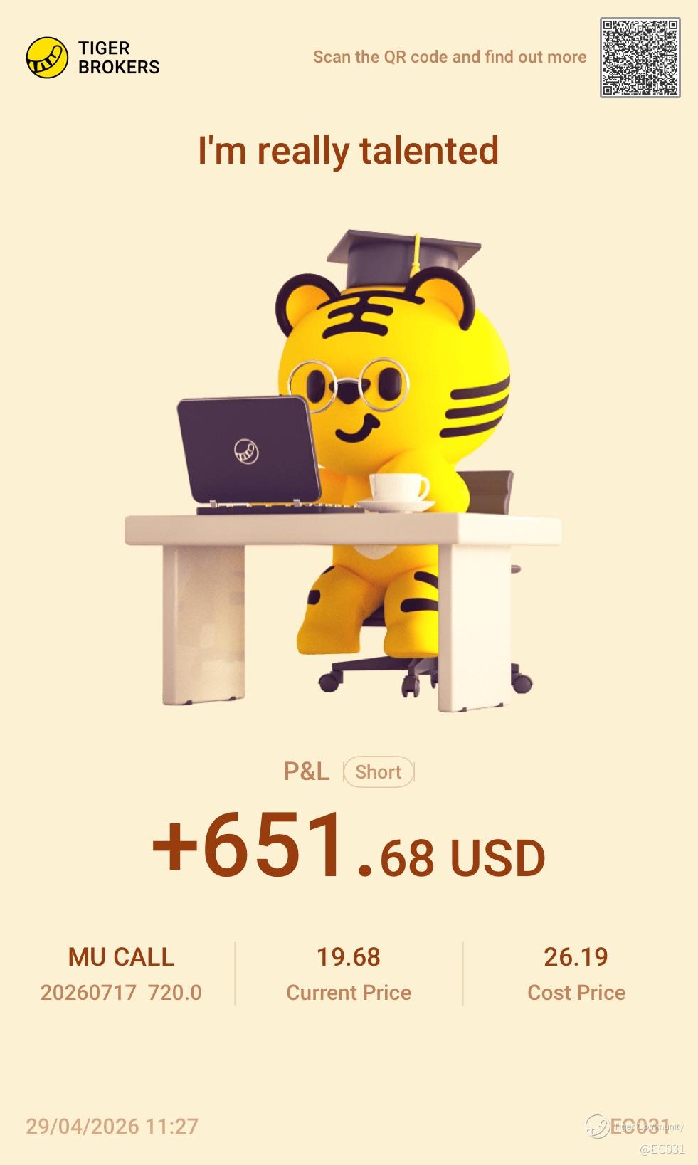 Share your positions with us! This is a column where you can find the winning trades of our fellow tigers. There probably are a few potential opportunities that you may have overlooked.