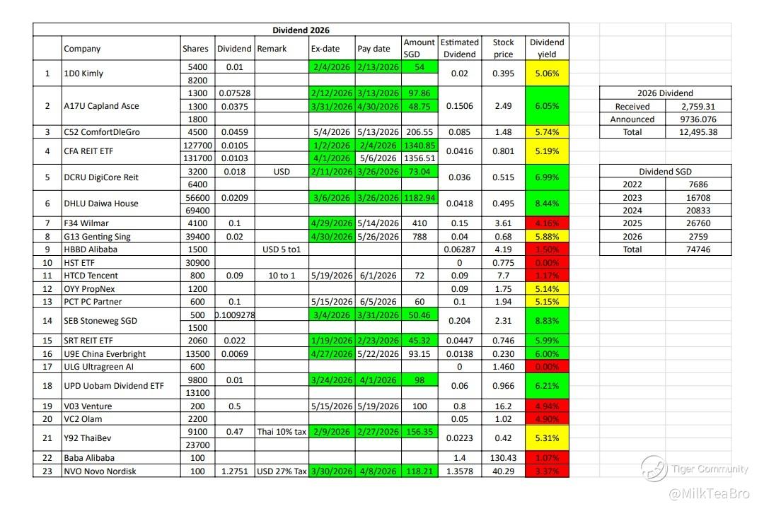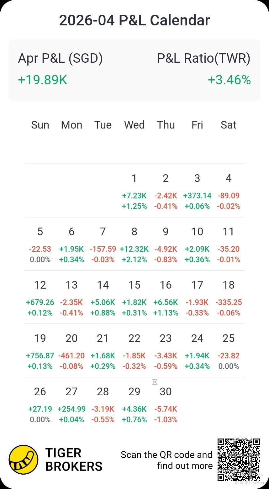 The ceasefire in Iran provided the market with a welcome breath of fresh air this April. By staying invested, I saw the portfolio gain SGD 20,000, representing a 3.5% return for the month. Year-to-date dividends have now reached a total of SGD 12,000.