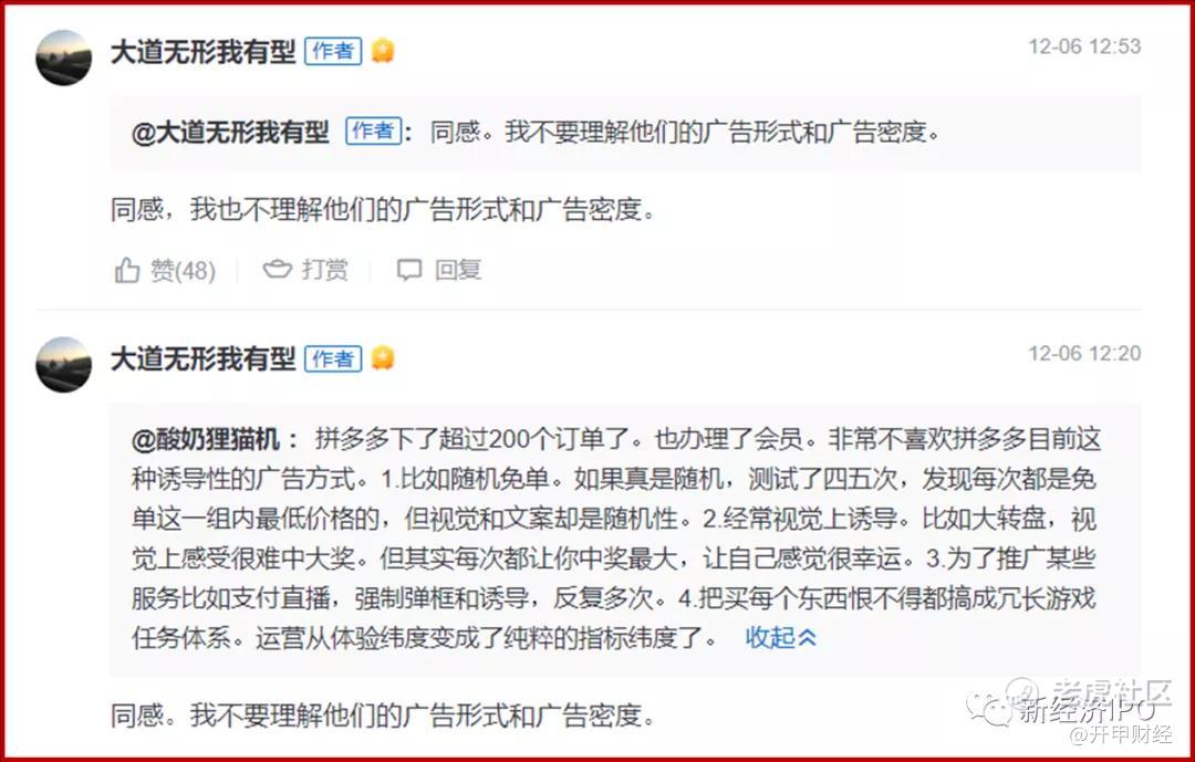 但是對普通人來說,不宜盲目跟風段永平的操作。畢竟,他自己也提醒投資人,他的行爲更像風投,其他人不要效仿。而且,再有投資人留言稱,拼多多那些煩人的廣告和砍一刀的套路讓人看不懂時,段永平回覆稱: