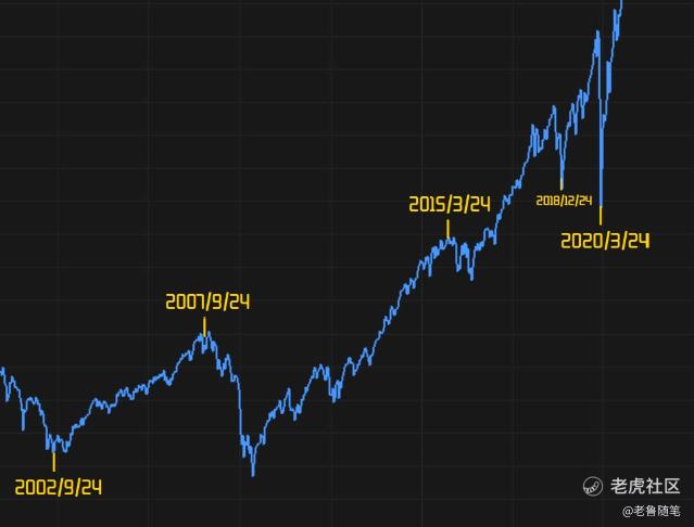 這張表格在我社羣裏面的朋友應該都不陌生,這是記錄了標普500從2000年3月24日起跌的時間節點