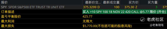 期權鏈裏面沒有120天的期權,那麼我這裏直接選擇136天的,時間長一點,期權肉厚抗跌,行權價直接選擇420,然後直接下單就可以了