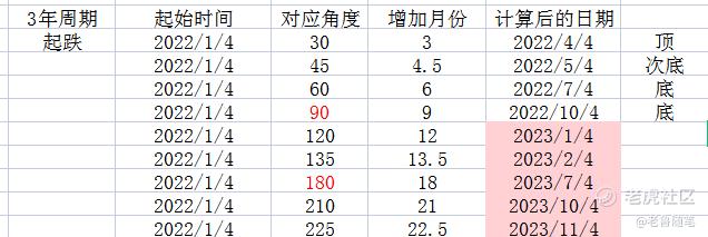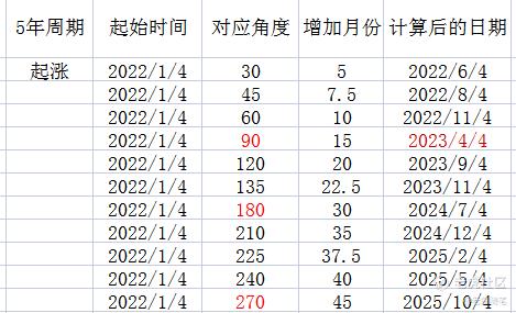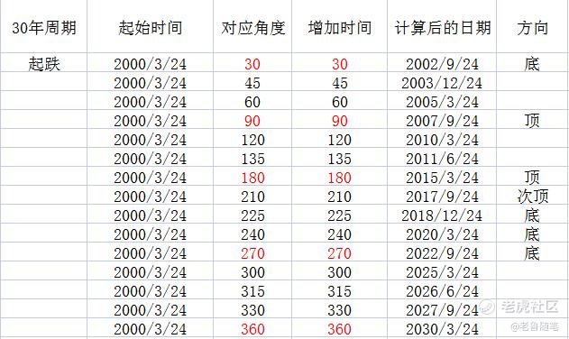 距離我們現在比較接近的時間是,2022年9月24日是階段性的底部,與10月13日相差一段時間,因爲這張表格計算的週期是30年,出現這種誤差,我認爲也是可以接受的