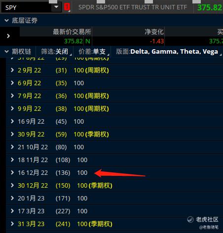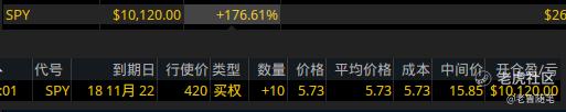 那這個時候我們基本可以確定【時間】和【空間】了,然後是選擇一個可以執行的標的,這裏呢我選擇的是spy,spy是標普500的寬基指數,波動率比較小,比較適合單腿期權交易