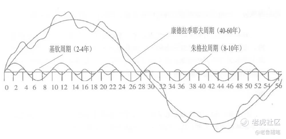 對於週期有研究的交易者應該都知道,一個大的週期是60年左右,也就是一個康德拉季耶夫週期,那一個大週期裏面會運行8-10年的朱格拉週期,同樣,朱格拉週期裏面也會運行2-4年的基欽週期,大週期裏面套小週期,小週期裏面還有更小的週期。