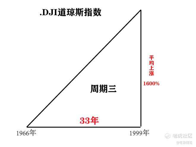 第三輪週期是從1966年到1999年,同樣經歷了33年,到道瓊斯指數從570點上漲到11500點,總計上漲幅度爲1600%