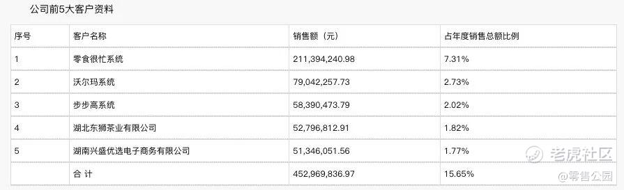 鹽津鋪子2022年財報顯示,其第一大客戶爲零食很忙,銷售額爲2.11億元,佔年度銷售總額的7.31%。