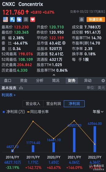 Concentrix(CNXC) 5年來營收、營業利潤保持增長,淨利潤只有2018年受所得稅大幅增長影響萎縮了一年,其後4年持續增長,5年平均增速分別爲26%,41%和43%,近3年平均增速分別爲10.3%,29.6%和55%。