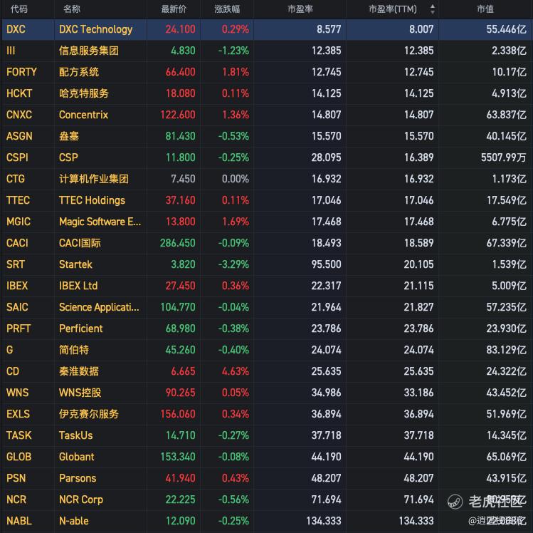 信息技術服務板塊就是俗稱的軟件外包行業,在整個軟件圈子裏面處於底層生態位,整體盈利能力非常差。但由於和高科技沾邊,所以估值上並不低,可選擇的股票並不多。