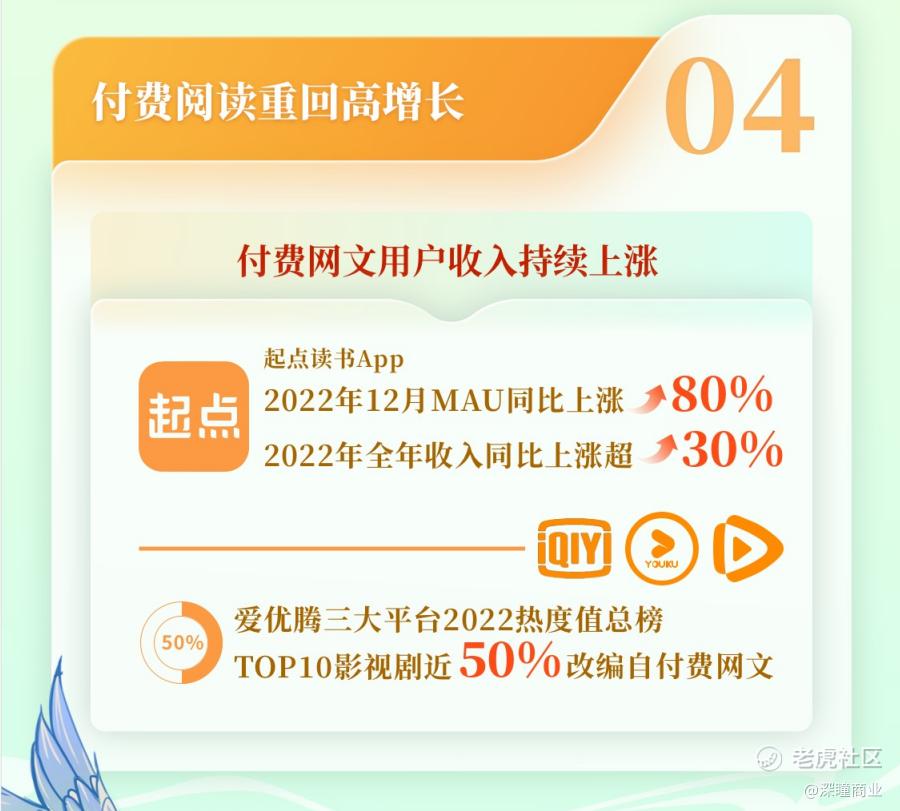 社科院報告數據顯示,起點讀書去年12月的月活用戶數同比上漲就高達80%,全年收入同比上漲超30%。甚至可以說,經受住前兩年免費平臺的衝擊後,網文付費模式正在開啓新紀元,不僅用戶付費意識真正成熟,完善的IP產業鏈支撐也是上一個時代不具備的。