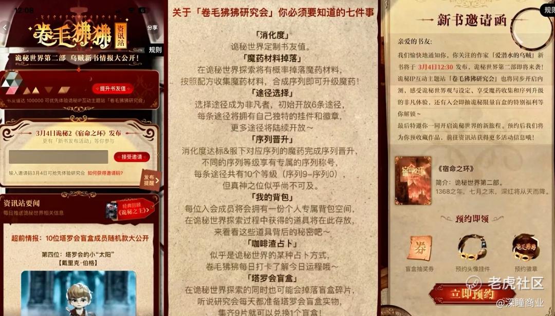 例如,今年3月《詭祕之主2:宿命之環》上線,起點官方同步公佈了主題IP站“捲毛狒狒研究會”, 讀者能夠在這裏討論劇情和體驗閱讀的新玩法,試圖進一步鼓勵讀者互動。
