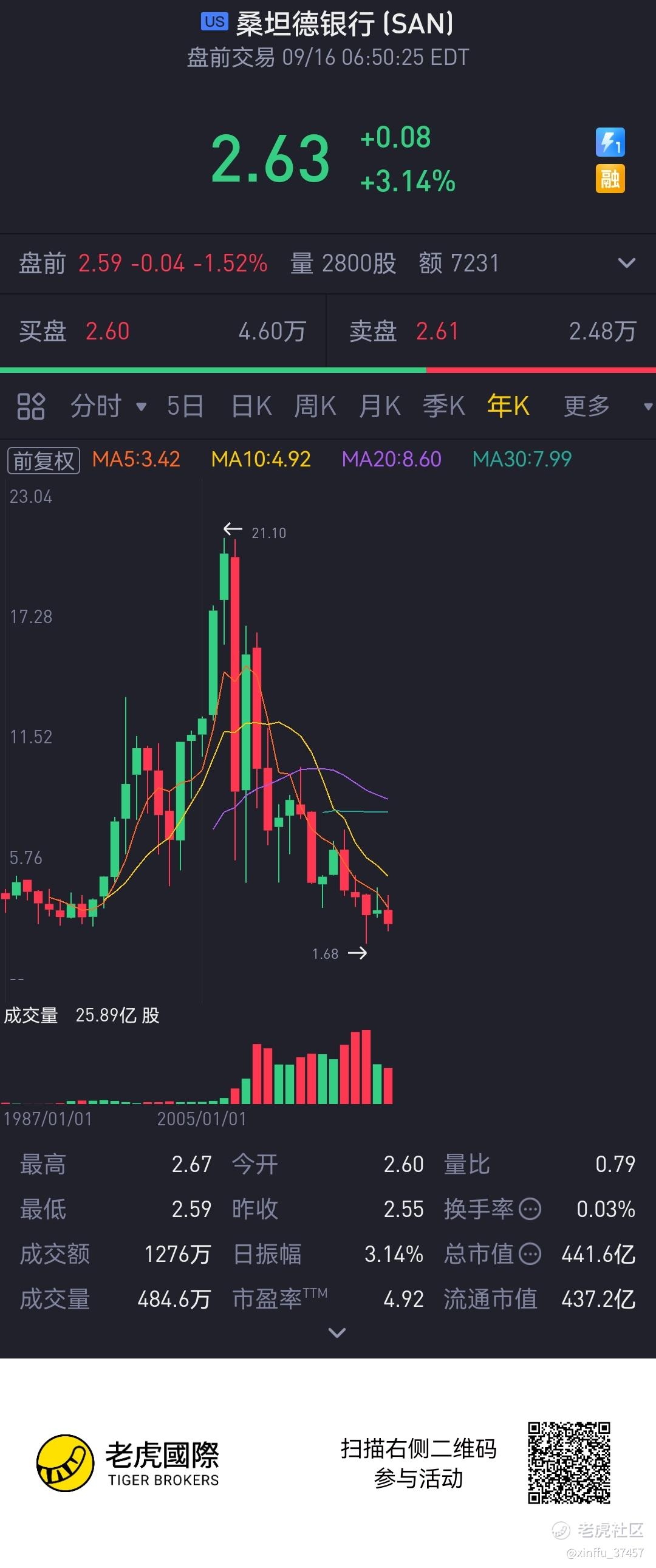 $桑坦德银行(SAN)$