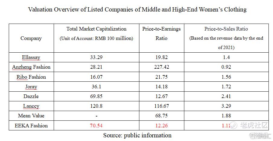 As a leading company in the field of middle and high-end women's clothing, EEKA Fashion has significant brand advantages and multi-brand operation capability, which has been demonstrated by the past performance and will make it confident for a long-term solid growth. As a rare company of high-end women’s clothing, it has been underestimated severely on its valuation due to factors such as the liquidity of Hong Kong stocks. Up to now, the company's price-to-earnings ratio is only 12.26 times, and the price-to-sales ratio 1.11 times, far lower than the average valuation of comparable A-share listed companies of middle and high-end women's clothing.