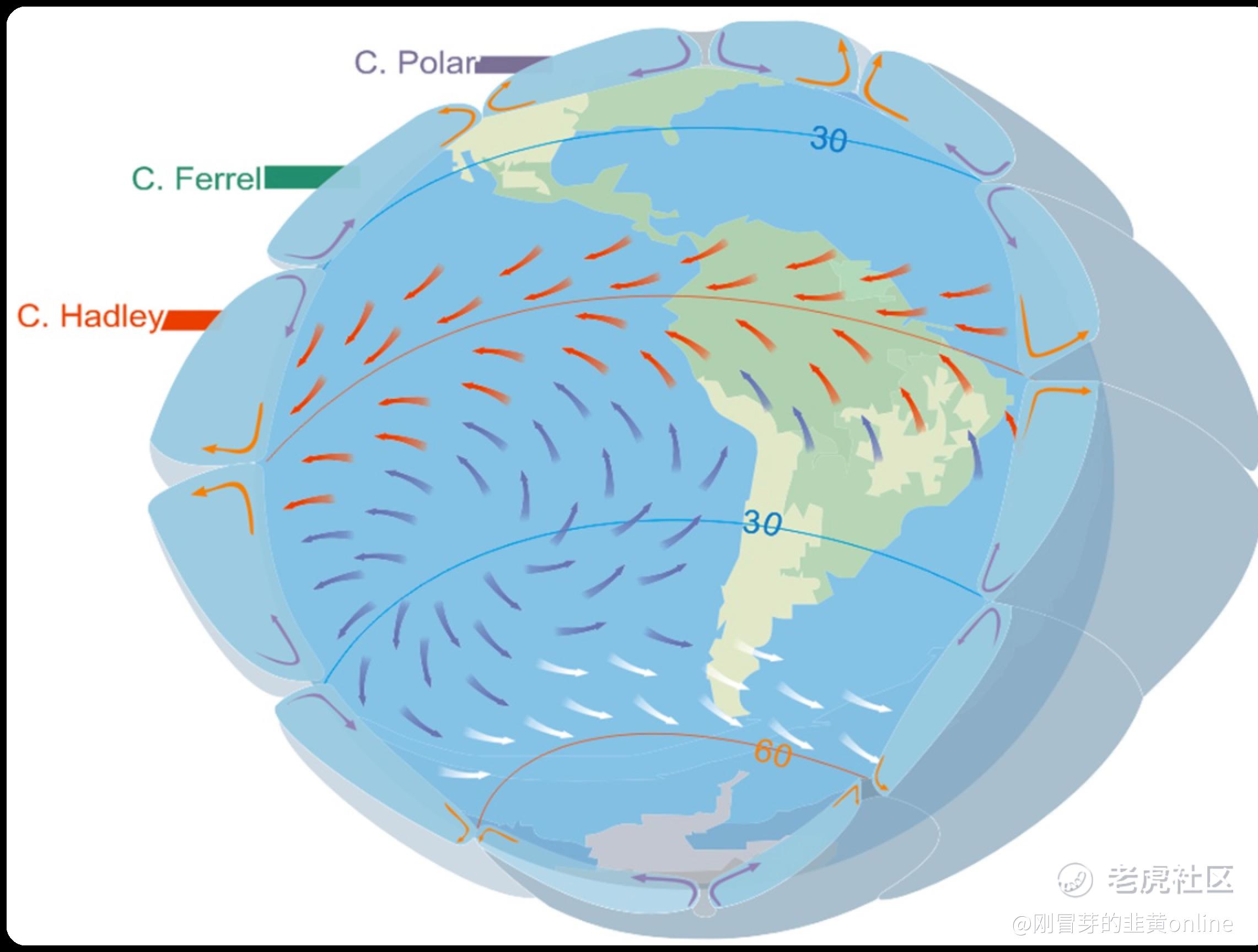西風帶,又稱盛行西風帶[1],是中緯度地區(緯度在35°-65°之間)自西向東吹的盛行風,由**帶高壓帶的高壓區域吹向極地區域。[2]北半球的西風帶主要吹西南風,南半球則主要吹西北風。當半球處於冬季且極地附近的氣壓較低時,西風帶最強;而當半球處於夏季且極地附近的氣壓較高時,西風帶最弱。南半球的中緯度地區少有會導致西風減速的陸地,因此盛行西風格外強。西風帶中存在着各類溫帶氣旋和反氣旋。越過**帶高壓脊線進入西風帶的熱帶氣旋會因西風的增加而轉向,並可能發生溫帶變性。盛行西風還把溫暖的赤道水和空氣帶到中緯度大陸的西海岸,對其氣候特徵起着重要作用。