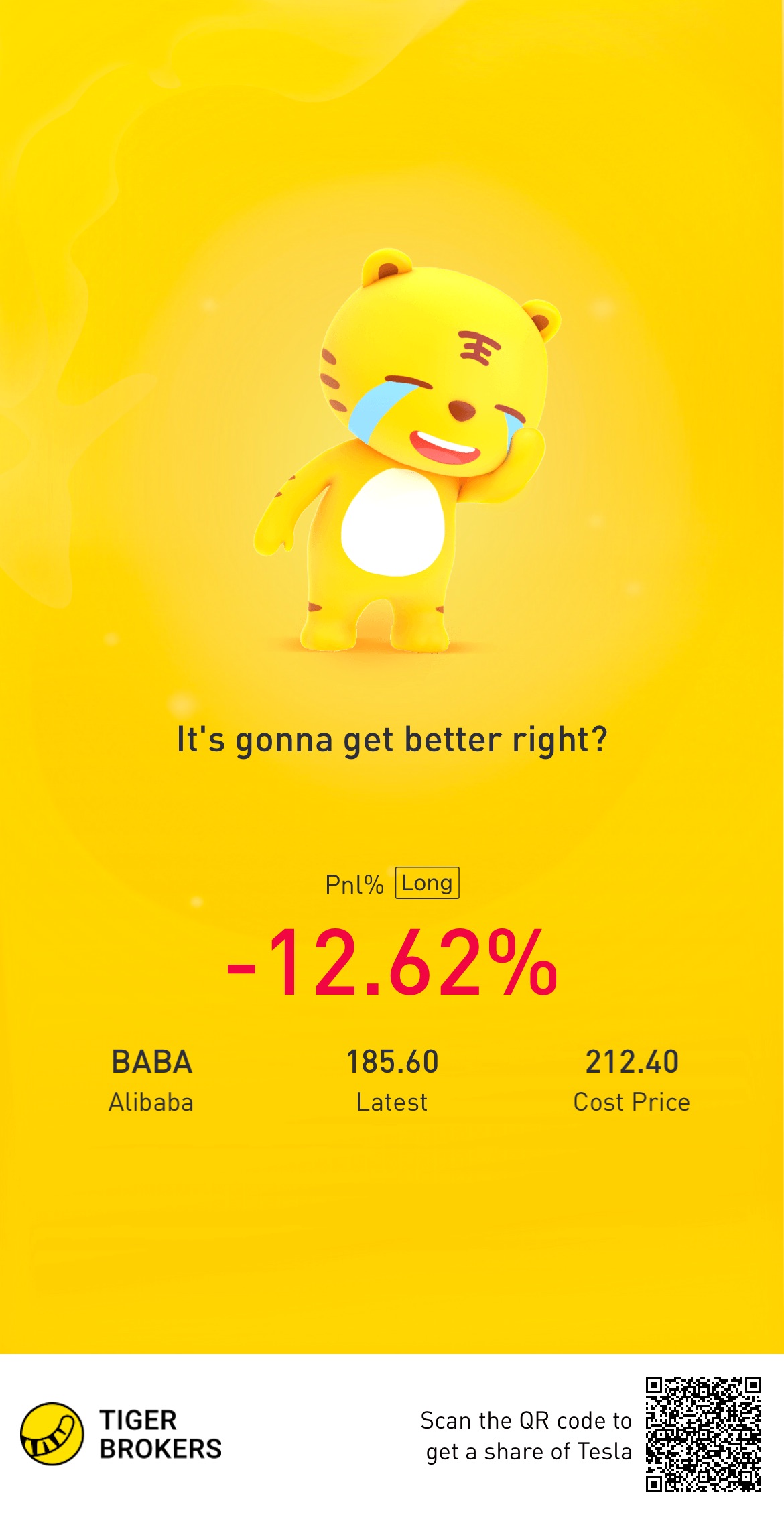 $Alibaba(BABA)$Great company with solid fundamentals. Be greedy when others are fearful, the price action right now does not reflect the real value of this company. I am buying more