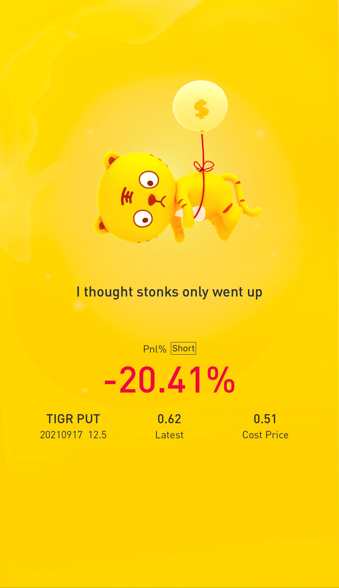 $TIGR 20210917 12.5 PUT(TIGR)$Share to earn coins