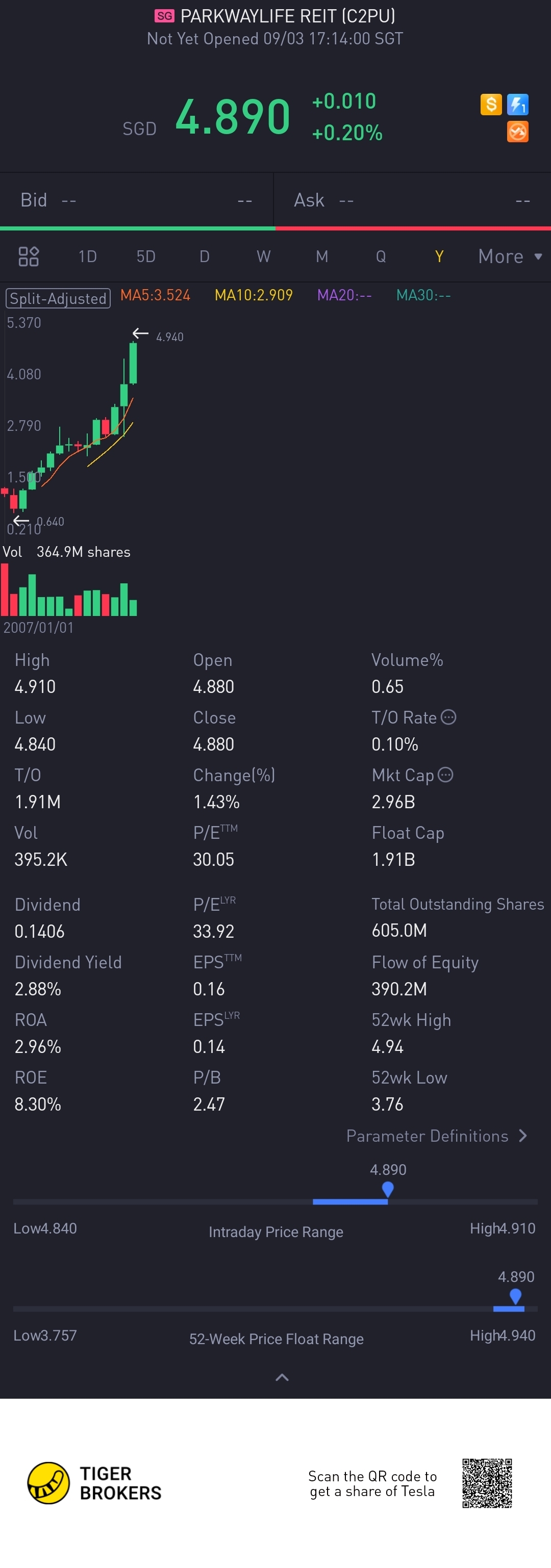 $PARKWAYLIFE REIT(C2PU.SI)$one of better sg rreits