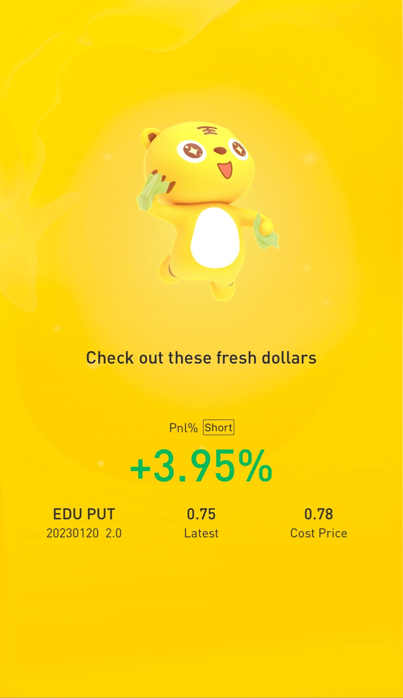 $EDU 20230120 2.0 PUT(EDU)$Earned a bit